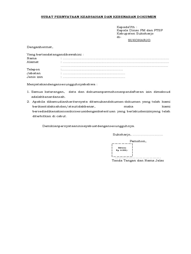 Surat Pernyataan Keabsahan Dokumen Ptsp / Contoh Surat Pernyataan Keabsahan Dan Kebenaran Dokumen Contoh Seputar Surat / Download surat pernyataan keabsahan dokumen bagi calon peserta ppg tahun 2019.